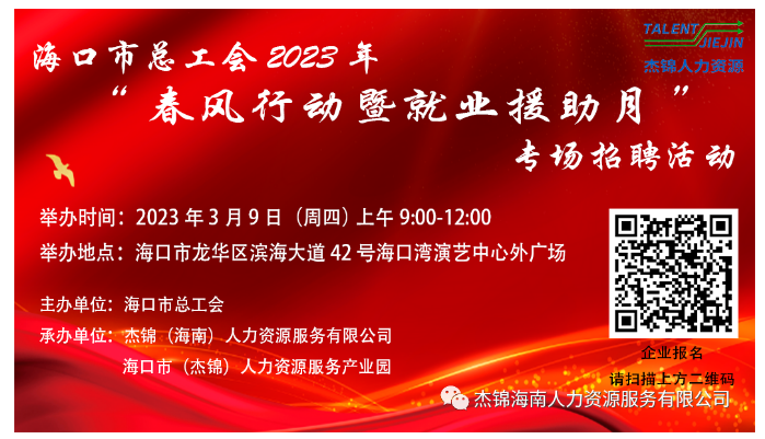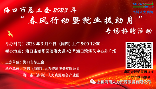 6月24日上午9時-12時,由海口市龍華區(qū)人力資源和社會保障局、海口市(龍華)人力資源服務(wù)產(chǎn)業(yè)園主辦,杰...